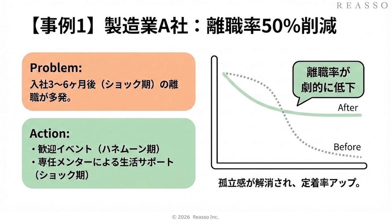 - 5.1.▼事例1▼製造業A社 - 離職率50%削減の成功例
