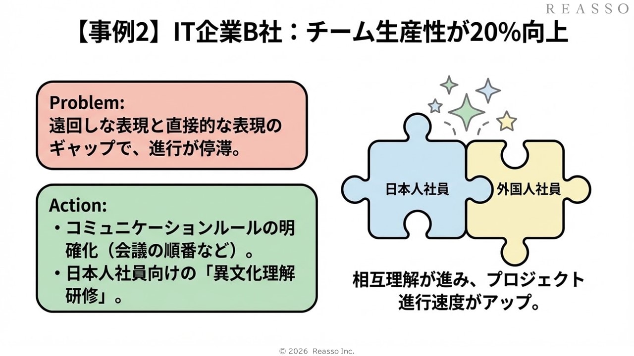 ▼事例2▼IT企業B社 - 多文化チームの生産性向上