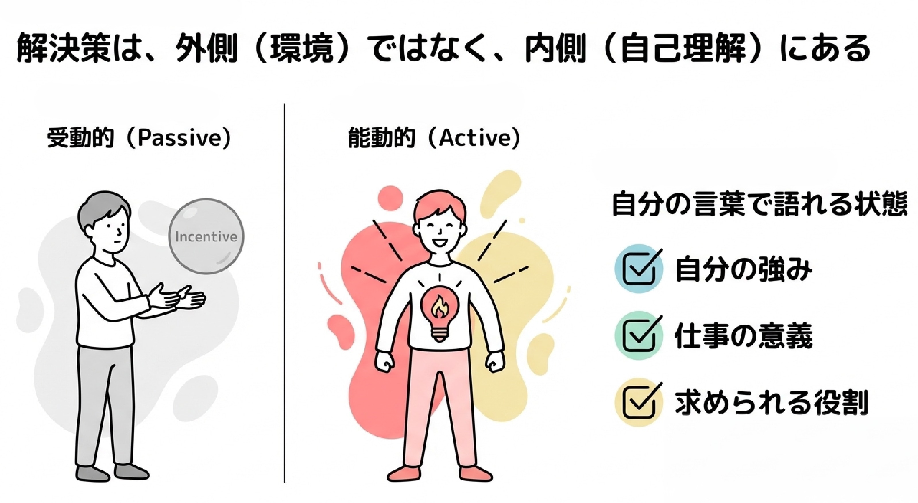 その答えは、組織の外側(制度・環境)ではなく、従業員一人ひとりの内側(自己理解)にあります。